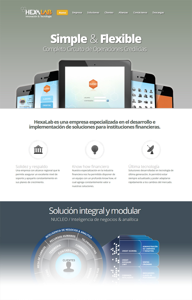 HexaLab es una empresa dedicada al desarrollo de software especialmente para el sector financiero. Diseño imagen Institucional, website, presentaciones, material promocional.